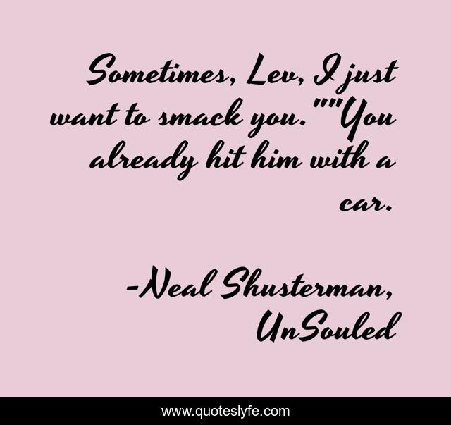 "Neal Shusterman, UnSouled Quotes." Quoteslyfe.com, 2025. Fri. 05 Dec. 2025. <https://www.quoteslyfe.com/quote/Sometimes-Lev-I-just-want-to-smack-153446>.