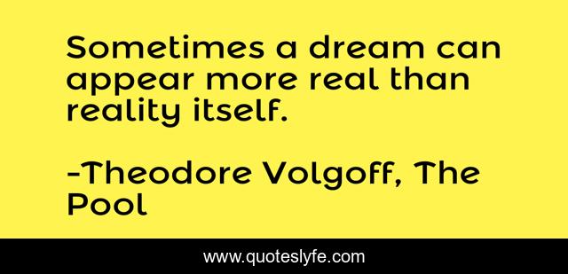 This page presents the quote "Sometimes a dream can appear more real than reality itself.". Author of this quote is Theodore Volgoff, The Pool. This quote is about dreams, reality,.