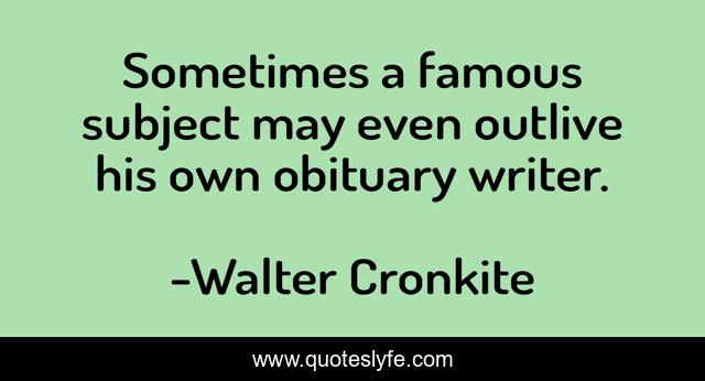 This page presents the quote "Sometimes a famous subject may even outlive his own obituary writer.". Author of this quote is Walter Cronkite. This quote is about may, writer, sometimes,.
