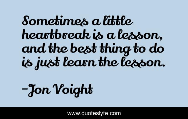 This page presents the quote "Sometimes a little heartbreak is a lesson, and the best thing to do is just learn the lesson.". Author of this quote is Jon Voight. This quote is about lesson, heartbreak, learn,.
