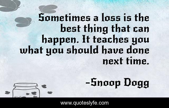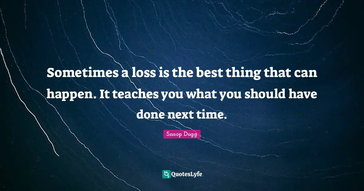 This page presents the quote "Sometimes a loss is the best thing that can happen. It teaches you what you should have done next time.". Author of this quote is Snoop Dogg. This quote is about loss, best,.
