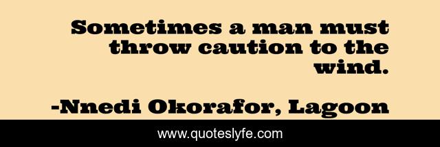 This page presents the quote "Sometimes a man must throw caution to the wind.". Author of this quote is Nnedi Okorafor, Lagoon. This quote is about caution, wind, man,.