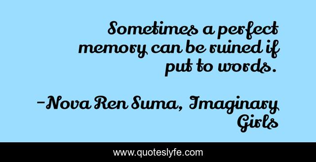 This page presents the quote "Sometimes a perfect memory can be ruined if put to words.". Author of this quote is Nova Ren Suma, Imaginary Girls. .