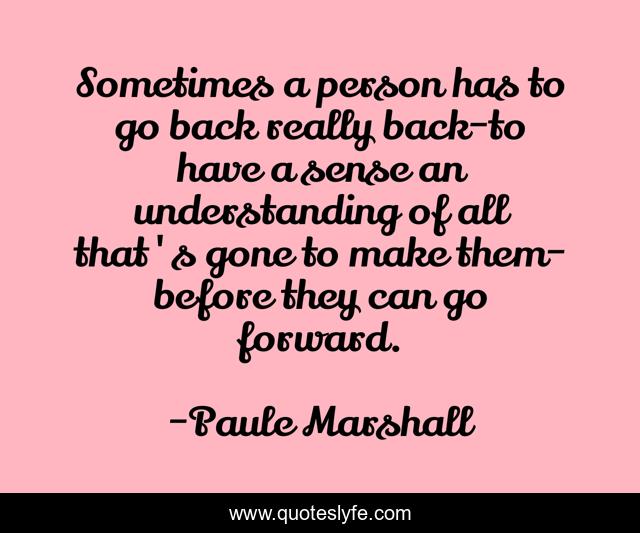 This page presents the quote "Sometimes a person has to go back really back-to have a sense an understanding of all that's gone to make them-before they can go forward.". Author of this quote is Paule Marshall. This quote is about self, knowledge,.