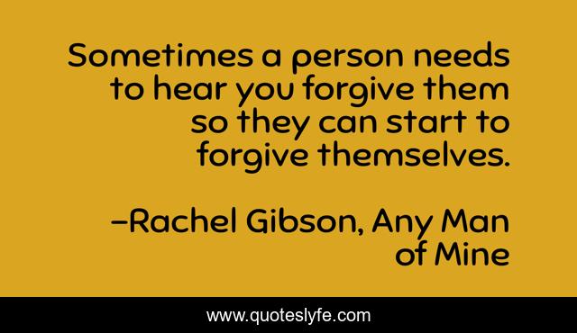 This page presents the quote "Sometimes a person needs to hear you forgive them so they can start to forgive themselves.". Author of this quote is Rachel Gibson, Any Man of Mine. .