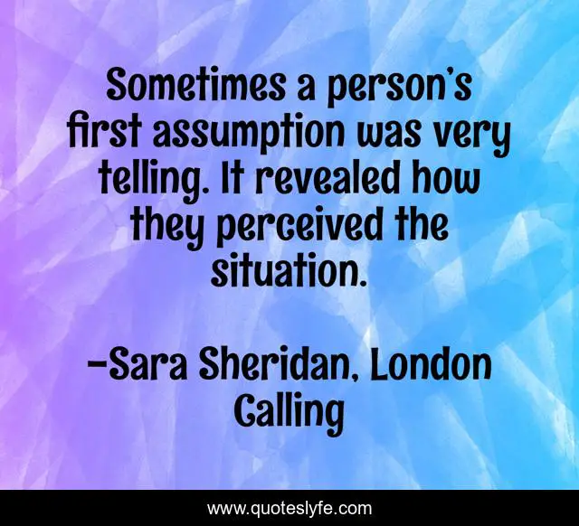 This page presents the quote "Sometimes a person’s first assumption was very telling. It revealed how they perceived the situation.". Author of this quote is Sara Sheridan, London Calling. This quote is about assumptions, perception,.