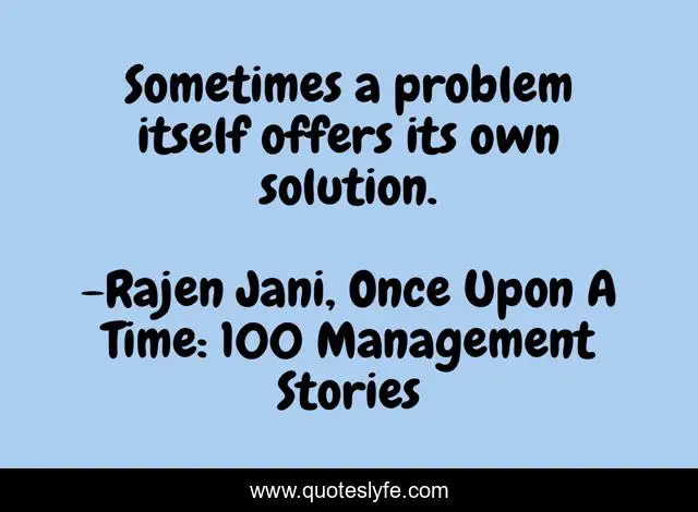 "Rajen Jani, Once Upon A Time: 100 Management Stories Quotes." Quoteslyfe.com, 2025. Fri. 05 Dec. 2025. <https://www.quoteslyfe.com/quote/Sometimes-a-problem-itself-offers-its-own-31261>.