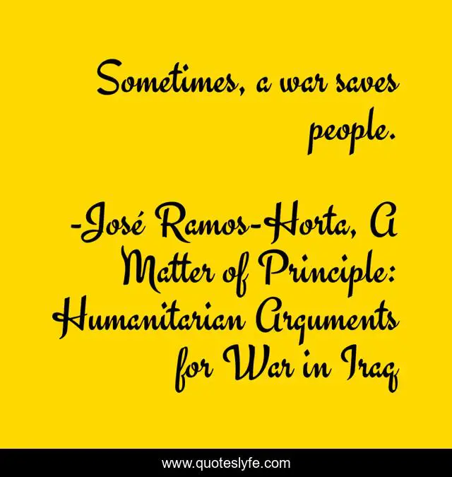 "José Ramos-Horta, A Matter of Principle: Humanitarian Arguments for War in Iraq Quotes." Quoteslyfe.com, 2025. Sun. 07 Dec. 2025. <https://www.quoteslyfe.com/quote/Sometimes-a-war-saves-people-52543>.