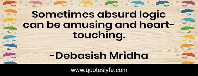 This page presents the quote "Sometimes absurd logic can be amusing and heart-touching.". Author of this quote is Debasish Mridha. This quote is about miraboli, oscar-wilde, philosophy, debasish-mridha, tagore, quotes, buddha, debasish-mridha-md, inspirational,.