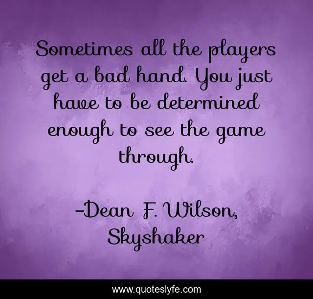 This page presents the quote "Sometimes all the players get a bad hand. You just have to be determined enough to see the game through.". Author of this quote is Dean F. Wilson, Skyshaker. This quote is about perseverance, motivation, behaviour, attitude, determination, inspirational, enthusiasm, inspiration,.