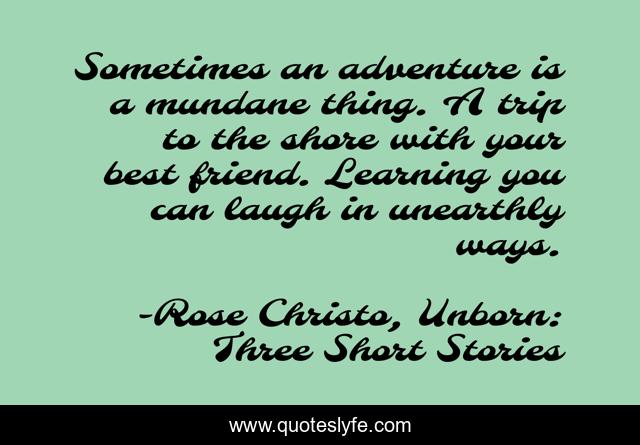 This page presents the quote "Sometimes an adventure is a mundane thing. A trip to the shore with your best friend. Learning you can laugh in unearthly ways.". Author of this quote is Rose Christo, Unborn: Three Short Stories. .
