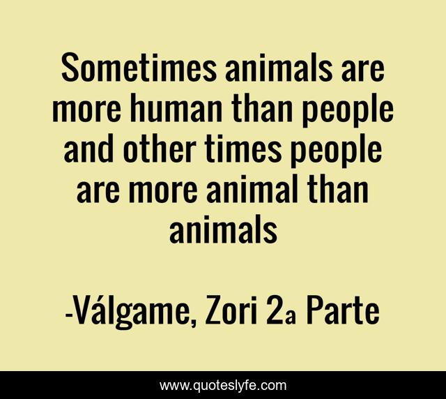"Válgame, Zori 2ª Parte Quotes." Quoteslyfe.com, 2025. Sat. 06 Dec. 2025. <https://www.quoteslyfe.com/quote/Sometimes-animals-are-more-human-than-people-102883>.