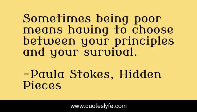 This page presents the quote "Sometimes being poor means having to choose between your principles and your survival.". Author of this quote is Paula Stokes, Hidden Pieces. This quote is about survival, poverty,.