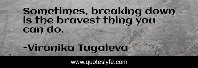 This page presents the quote "Sometimes, breaking down is the bravest thing you can do.". Author of this quote is Vironika Tugaleva. This quote is about breakdown, brave, vulnerability, emotions, courage, breaking-down, crying, feeling, strength,.