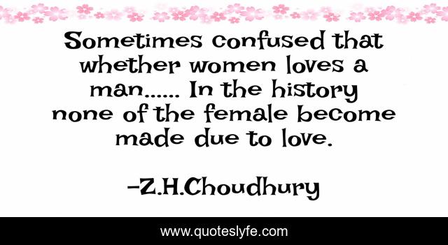 This page presents the quote "Sometimes confused that whether women loves a man...... In the history none of the female become made due to love.". Author of this quote is Z.H.Choudhury. .