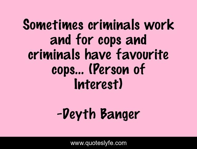 This page presents the quote "Sometimes criminals work and for cops and criminals have favourite cops... (Person of Interest)". Author of this quote is Deyth Banger. This quote is about criminals, work, for, sometimes,.