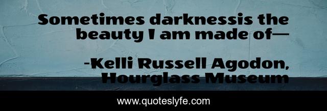 "Kelli Russell Agodon, Hourglass Museum Quotes." Quoteslyfe.com, 2025. Sat. 06 Dec. 2025. <https://www.quoteslyfe.com/quote/Sometimes-darknessis-the-beauty-I-am-made-114083>.
