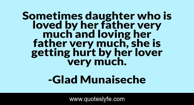 This page presents the quote "Sometimes daughter who is loved by her father very much and loving her father very much, she is getting hurt by her lover very much.". Author of this quote is Glad Munaiseche. This quote is about daughter, hurting, hurt, father, lover,.