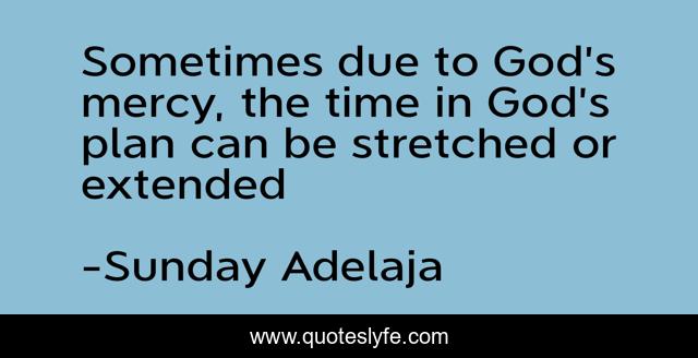 This page presents the quote "Sometimes due to God’s mercy, the time in God’s plan can be stretched or extended". Author of this quote is Sunday Adelaja. This quote is about mercy, extended, stretch, god, plan, time,.