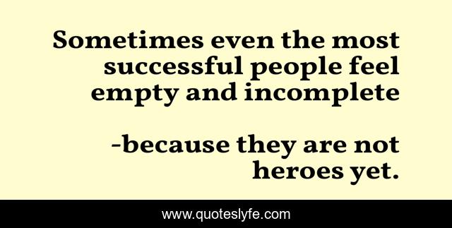 This page presents the quote "Sometimes even the most successful people feel empty and incomplete". Author of this quote is because they are not heroes yet.. .