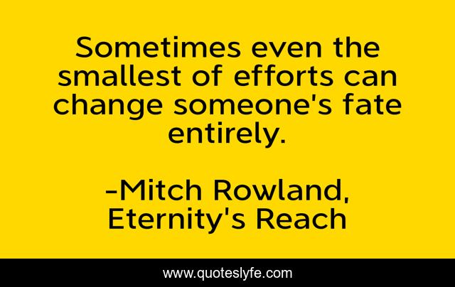This page presents the quote "Sometimes even the smallest of efforts can change someone’s fate entirely.". Author of this quote is Mitch Rowland, Eternity's Reach. This quote is about confidence, fate, positive, motivational, fantasy, optimistic,.