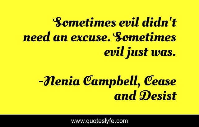 "Nenia Campbell, Cease and Desist Quotes." Quoteslyfe.com, 2025. Fri. 05 Dec. 2025. <https://www.quoteslyfe.com/quote/Sometimes-evil-didn-t-need-an-excuse-154340>.