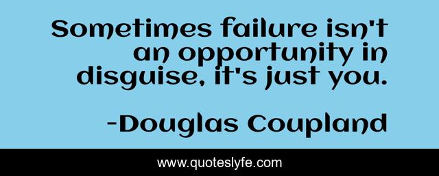 This page presents the quote "Sometimes failure isn't an opportunity in disguise, it's just you.". Author of this quote is Douglas Coupland. This quote is about sometimes, opportunity,.