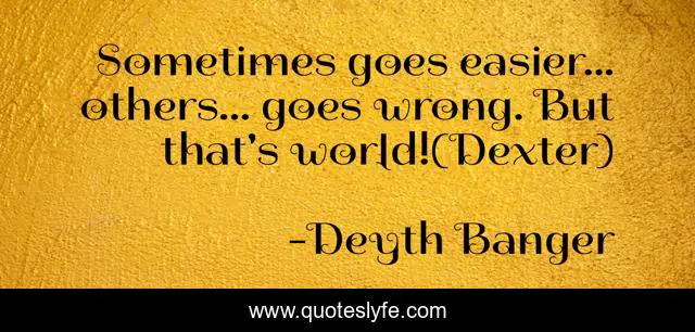 This page presents the quote "Sometimes goes easier... others... goes wrong. But that's world!(Dexter)". Author of this quote is Deyth Banger. This quote is about wrong, sometimes-others, dexter, goes,.
