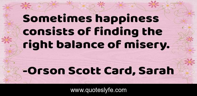 This page presents the quote "Sometimes happiness consists of finding the right balance of misery.". Author of this quote is Orson Scott Card, Sarah. .