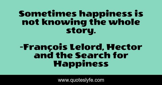 This page presents the quote "Sometimes happiness is not knowing the whole story.". Author of this quote is François Lelord, Hector and the Search for Happiness. .
