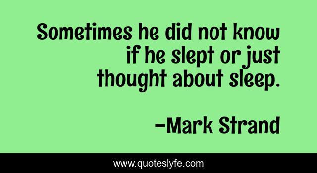 This page presents the quote "Sometimes he did not know if he slept or just thought about sleep.". Author of this quote is Mark Strand. This quote is about the-story-of-our-lives, poem, the-late-hour, poetry, the-monument,.