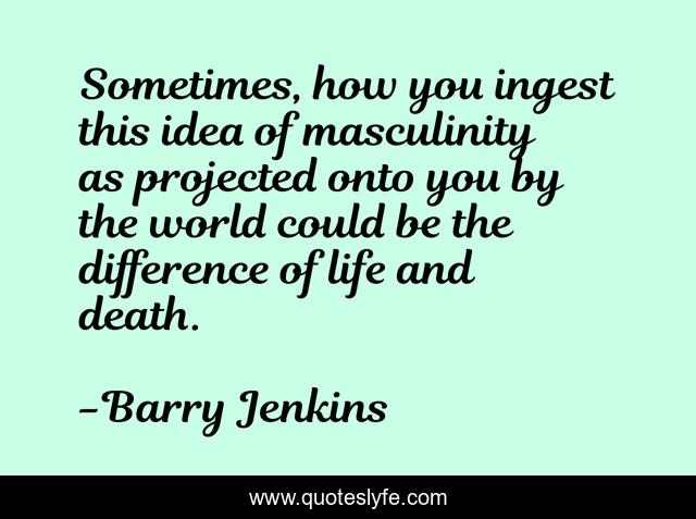 This page presents the quote "Sometimes, how you ingest this idea of masculinity as projected onto you by the world could be the difference of life and death.". Author of this quote is Barry Jenkins. This quote is about world, life,.