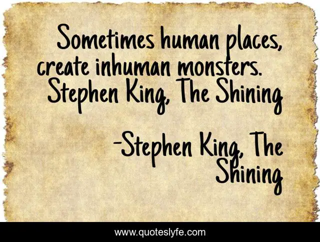 "Stephen King, The Shining Quotes." Quoteslyfe.com, 2025. Mon. 08 Dec. 2025. <https://www.quoteslyfe.com/quote/Sometimes-human-places-create-inhuman-monsters-Stephen-82646>.