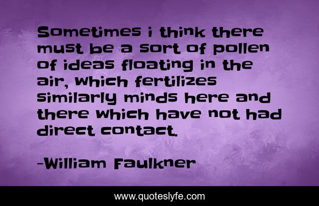 This page presents the quote "Sometimes i think there must be a sort of pollen of ideas floating in the air, which fertilizes similarly minds here and there which have not had direct contact.". Author of this quote is William Faulkner. This quote is about pollen, contact, mind, ideas,.