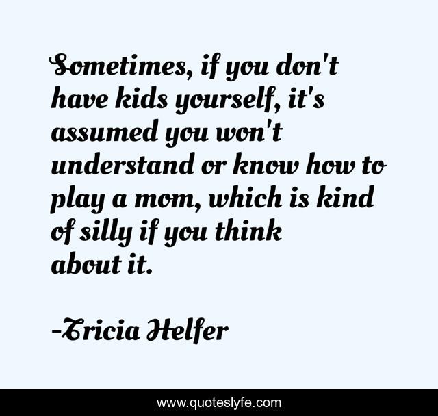 This page presents the quote "Sometimes, if you don't have kids yourself, it's assumed you won't understand or know how to play a mom, which is kind of silly if you think about it.". Author of this quote is Tricia Helfer. This quote is about think, yourself,.