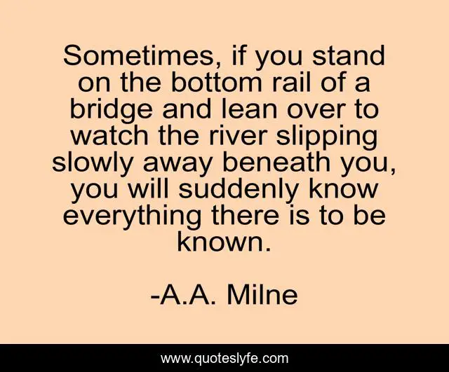 This page presents the quote "Sometimes, if you stand on the bottom rail of a bridge and lean over to watch the river slipping slowly away beneath you, you will suddenly know everything there is to be known.". Author of this quote is A.A. Milne. .