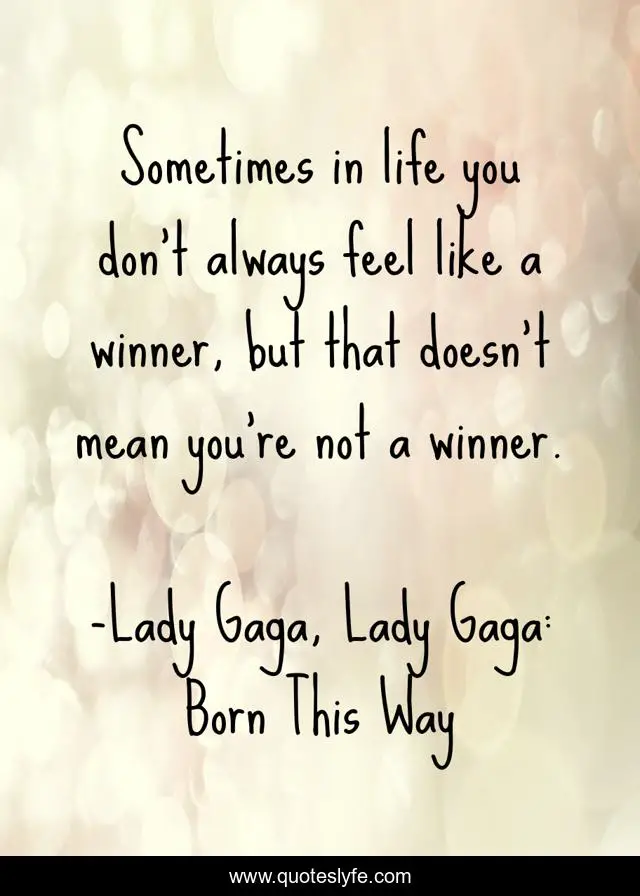 This page presents the quote "Sometimes in life you don't always feel like a winner, but that doesn't mean you're not a winner.". Author of this quote is Lady Gaga, Lady Gaga: Born This Way. .
