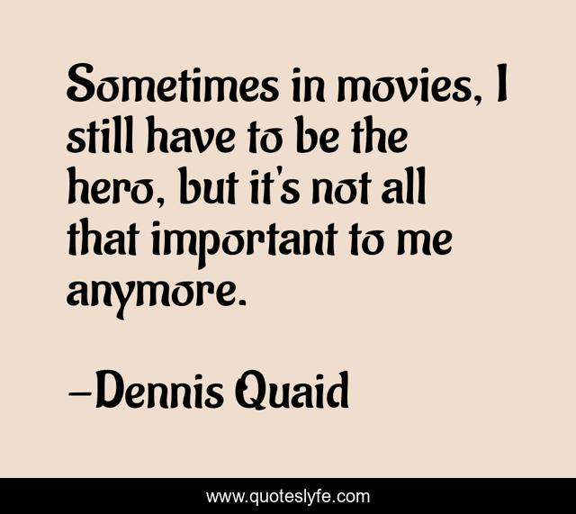 This page presents the quote "Sometimes in movies, I still have to be the hero, but it's not all that important to me anymore.". Author of this quote is Dennis Quaid. This quote is about me, important, hero,.