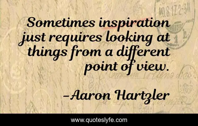 This page presents the quote "Sometimes inspiration just requires looking at things from a different point of view.". Author of this quote is Aaron Hartzler. This quote is about what-we-saw, perspective, inspiration,.