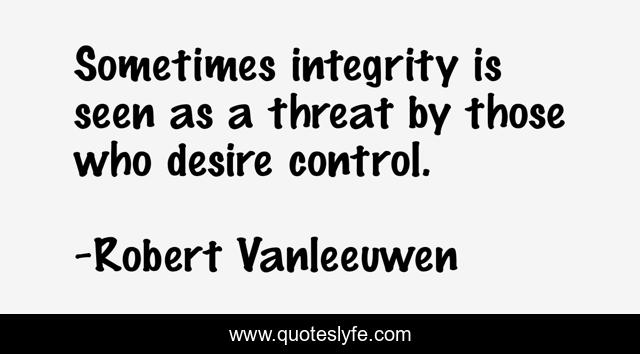 This page presents the quote "Sometimes integrity is seen as a threat by those who desire control.". Author of this quote is Robert Vanleeuwen. This quote is about control, life, motivation, courage, threat, integrity,.