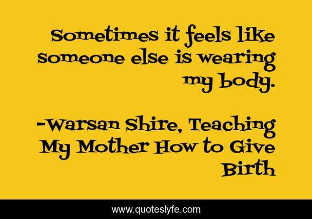 "Warsan Shire, Teaching My Mother How to Give Birth Quotes." Quoteslyfe.com, 2025. Fri. 05 Dec. 2025. <https://www.quoteslyfe.com/quote/Sometimes-it-feels-like-someone-else-is-24768>.