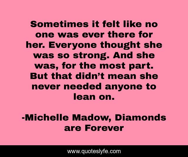 This page presents the quote "Sometimes it felt like no one was ever there for her. Everyone thought she was so strong. And she was, for the most part. But that didn’t mean she never needed anyone to lean on.". Author of this quote is Michelle Madow, Diamonds are Forever. .