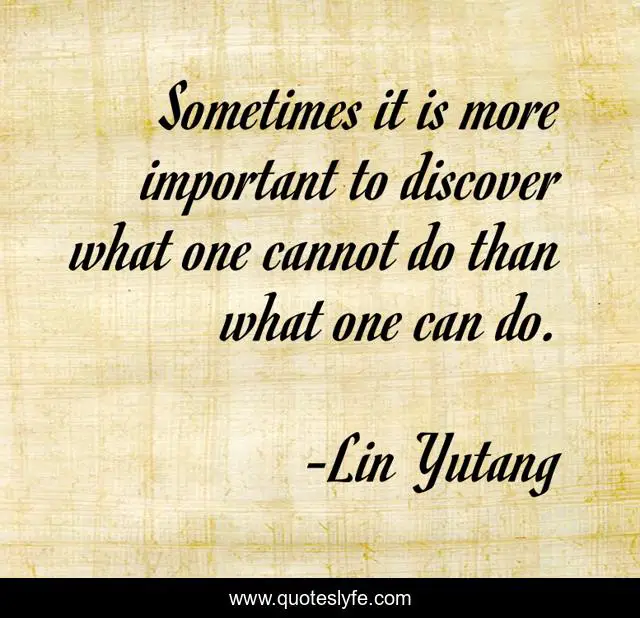 This page presents the quote "Sometimes it is more important to discover what one cannot do than what one can do.". Author of this quote is Lin Yutang. This quote is about ability, achievement,.