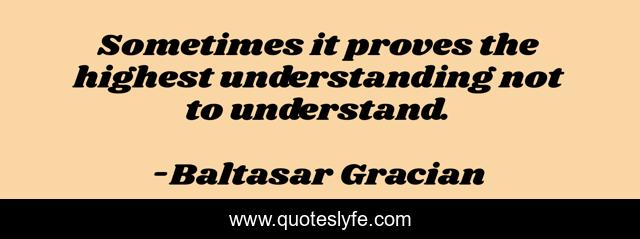 This page presents the quote "Sometimes it proves the highest understanding not to understand.". Author of this quote is Baltasar Gracian. .