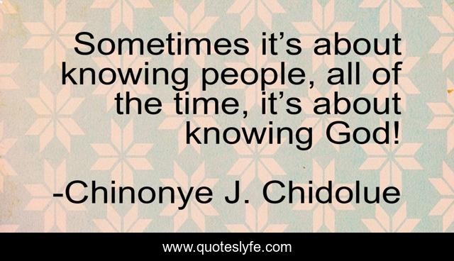 "Chinonye J. Chidolue Quotes." Quoteslyfe.com, 2025. Sat. 06 Dec. 2025. <https://www.quoteslyfe.com/quote/Sometimes-it-s-about-knowing-people-all-111156>.