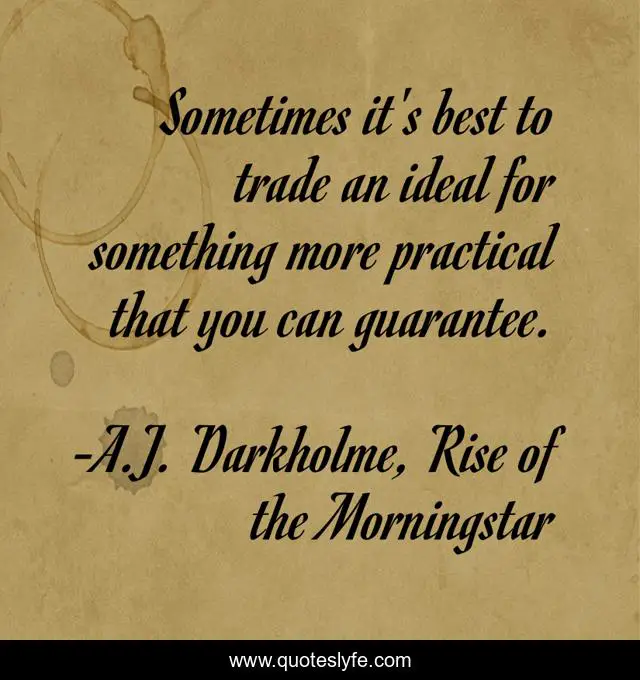 This page presents the quote "Sometimes it's best to trade an ideal for something more practical that you can guarantee.". Author of this quote is A.J. Darkholme, Rise of the Morningstar. This quote is about idealism, better-yourself, self-awareness, risk, ideals, practicality, self-improvement, guarantees, realism,.