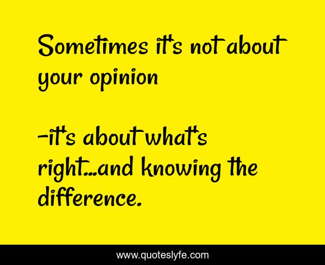 This page presents the quote "Sometimes it's not about your opinion". Author of this quote is it's about what's right...and knowing the difference.. .