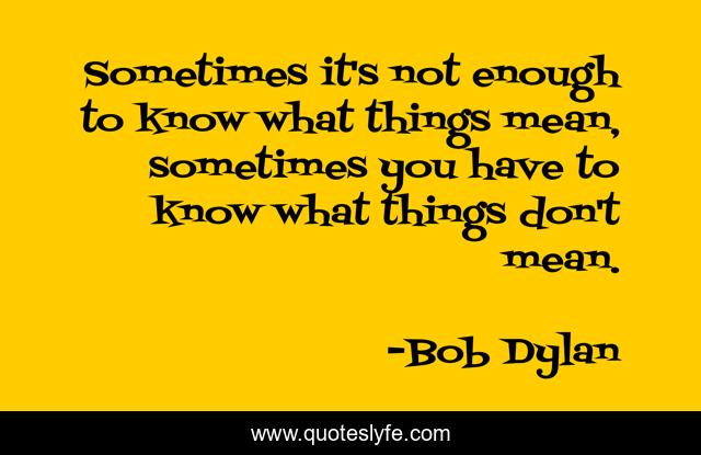 This page presents the quote "Sometimes it's not enough to know what things mean, sometimes you have to know what things don't mean.". Author of this quote is Bob Dylan. This quote is about understanding, wisdom,.