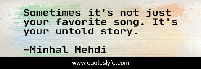 This page presents the quote "Sometimes it's not just your favorite song. It's your untold story.". Author of this quote is Minhal Mehdi. This quote is about love, story, untold, affection, song,.
