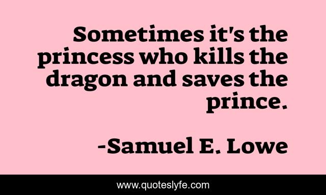 This page presents the quote "Sometimes it's the princess who kills the dragon and saves the prince.". Author of this quote is Samuel E. Lowe. This quote is about love, relationship, affection,.
